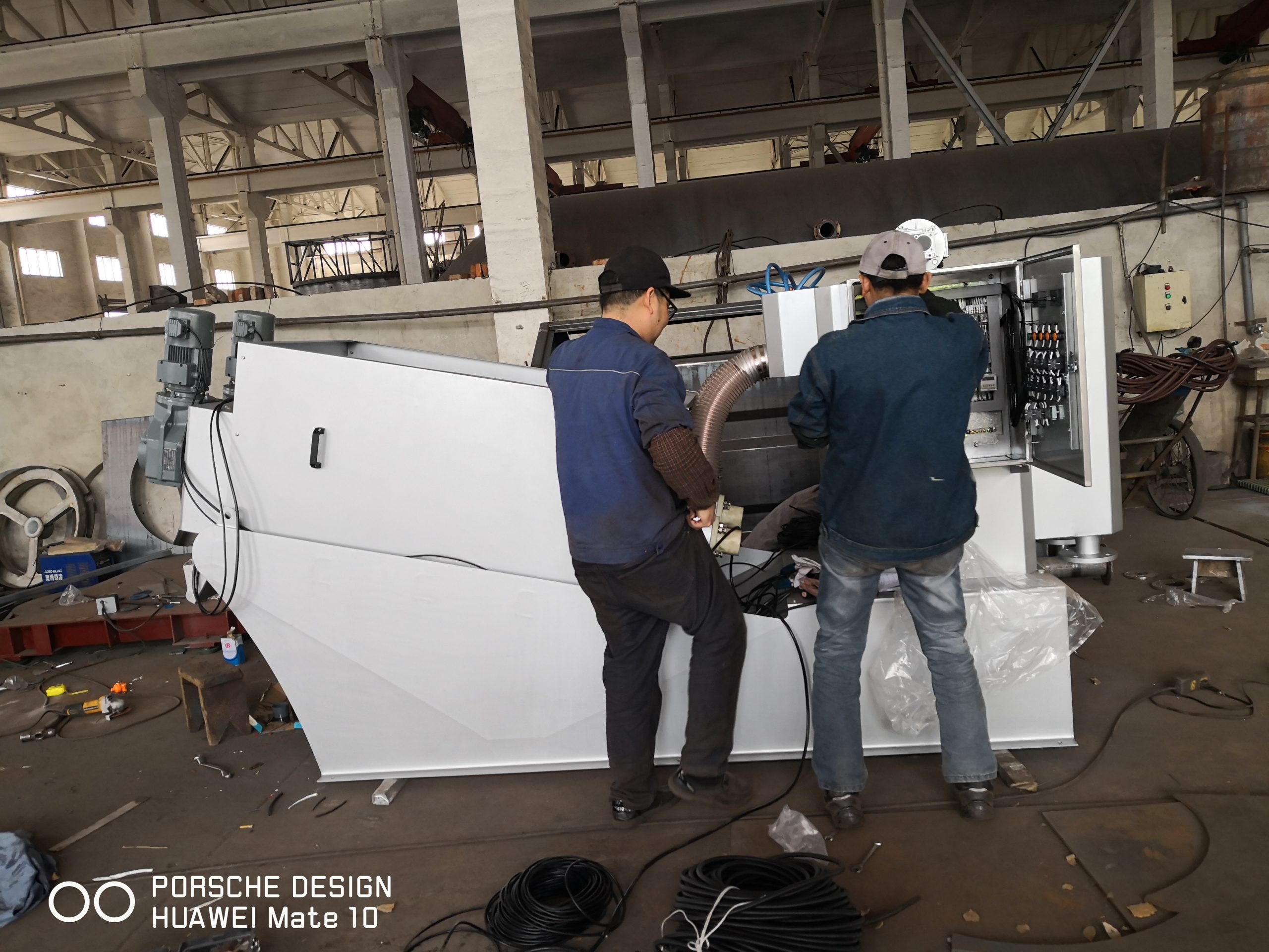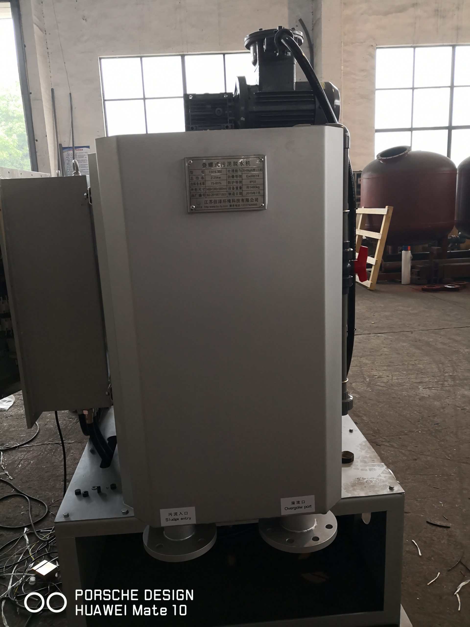 The second stage enters the dehydration stage, where the concentrated sludge is continuously pushed forward towards the sludge outlet direction with the spiral axis, and the pitch gradually decreases. The gaps between the various rings also become smaller, and the volume inside the main body continues to decrease; Under the action of the back pressure plate of the sludge hopper, the pressure gradually increases. Under the continuous push of the spiral shaft, the water in the sludge flows out from the gap of the fixed ring, and the moisture content of the filter cake continuously decreases and increases. Finally, continuous dehydration is achieved to achieve the target moisture content of the sludge.